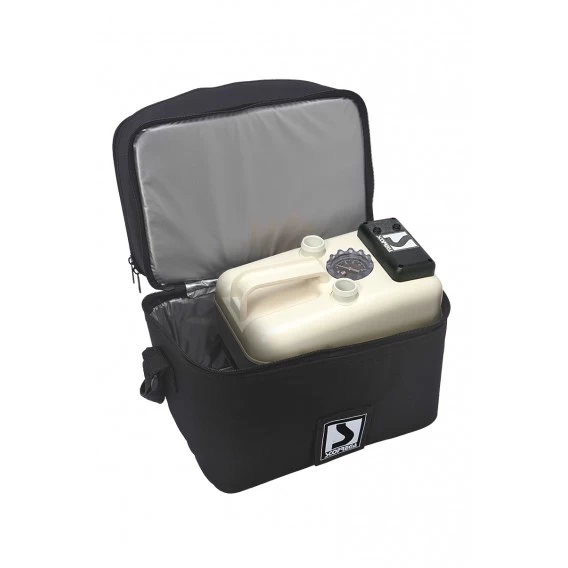 Die Bravo GE-20-2 ist eine hocheffiziente und geräuscharme Elektropumpe. Das System kommt ohne Relais und Mikroschalter aus und basiert auf zwei Zylindern. Mit ihr lassen sich z.B. Luftboote und iSUPS innerhalb kurzer Zeit aufpumpen. Die Pumpe schaltet automatisch ab, sobald der gewünschte Luftdruck erreicht ist. Dieser ist mit Hilfe der Messuhr unkompliziert einstellbar. Der Arbeitsmodus ist von einer LED-Anzeige ablesbar. Zum Lieferumfang zählen eine praktische Transporttasche, ein 12V DC Akku (über Standard 110-240 AC/DC aufladbar) sowie Batterieklemmen zum Anschluss an eine externe 12V Batterie.