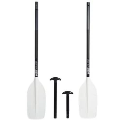 Die 4teilige Paddelkombination kannst Du in Sekunden vom Kajak Doppelpaddel mit den beiden T-Griffen zu zwei Stechpaddeln umbauen und umgekehrt. Hat Dein Mitpaddler also während der Kanutour keine Lust mehr auf Paddeln baust Du die Paddel einfach zum Doppelpaddel um.