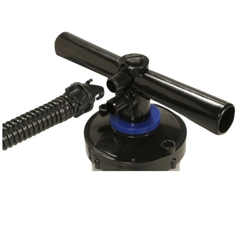 Inkl. Schlauch mit Bajonettanschluß (gegen unbeabsichtigtes Ablösen des Schlauchs) und Spitzadapter für Luftmatratzen u.s.w.