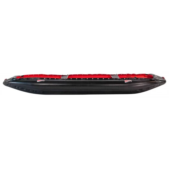 Flache Gesamtbauweise, Bug und Heck leicht aufgebogen: Der niedrige Schwerpunkt macht den aufblasbaren Kanadier sehr kipp- und kentersicher, dazu gleitet der XR TREKKING gut ĂĽber Wellen.