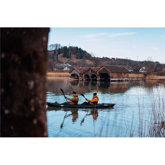Dank der smarten Kombination aus innovativer Bug- und Kiel Konstruktion sowie Drop-Stitch Technologie, bietet das RUSH zahlreiche Möglichkeiten. Das RUSH ist geeignet für Erholungs-Paddeltouren, Bootswandern, ruhige Seen, Küstennähe, bis hin zu Wildwasserstufe II. Optional lässt sich das Kajak mit einem Steuerruder und / oder einer Spritzdecke nachrüsten. Das RUSH 2 kann durch das durchdachte Sitz-Beschlag-System sowohl solo als auch zu zweit gepaddelt werden. Die Drop-stitch-Technologie basiert auf der Verbindung der oberen und unteren Schichten des Gewebes mit Tausenden von Polyesterfasern. Dieses, mit einer luftdichten Beschichtung versehene Gewebe, ist von beiden Seiten mit einem widerstandsfähigen NITRILON®-Material geschützt. Dank der Tausenden Fasern, die beiden Schichten zusammenhalten, können Produkte aus Drop-stitch einen hohen Druck aushalten. Durch aufpumpen wird das Material sehr fest und kommt der Beschaffenheit eines Festkajaks sehr nahe, wobei das Packmass weiterhin klein bleibt.