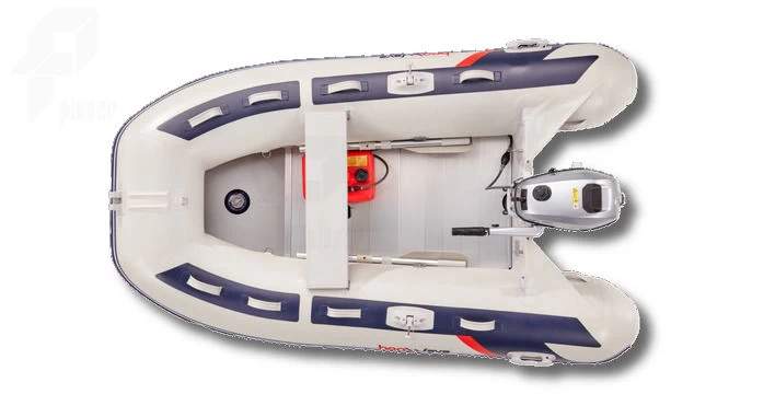 Wer den SpaĂ ernst nimmt, hat mit dem Aluminiumdeck mit V-Kiel eine besonders robuste Option. Damit sind Sie fĂŒr alle Wasser bestens gewappnet. Die extragroĂen TragschlĂ€uche nehmen dem Wellenschlag viel Kraft