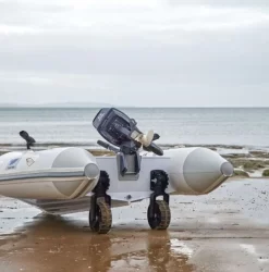 Diese Schlauchboot und Dinghy RĂ€der sind eine einfach, aber robuste Option, aber z.B. auch leichte Aluminiumboote, zum Strand zu transportieren und dabei zu vermeiden, die schwere Last selbst komplett tragen zu mĂŒssen. Die RĂ€der haben eine einfache Ein- und Ausrastmöglichkeit in der unterten und oberen Position. Die RĂ€der samt Achsenteil können einfach und bequem vom Spiegel, bzw. von den fest montierten Einrast-Konsolen abegnommen werden, um diese geschĂŒtzt vor der Sonne zu lagern, wenn das Boot nicht in Gebrauch ist.